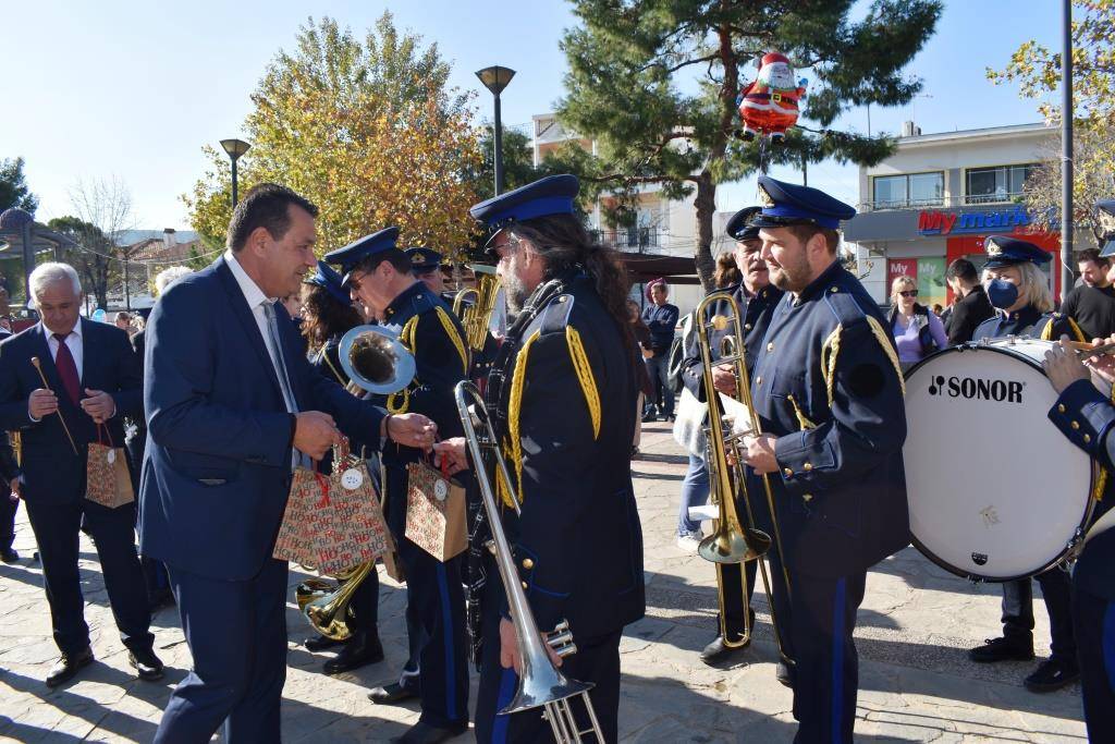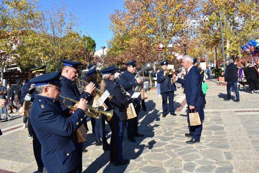 Ιδιαίτερο τόνο στις εκδηλώσεις έδωσε η Φιλαρμονική του Δήμου που έπαιξε κάλαντα και εορταστικά τραγούδια.