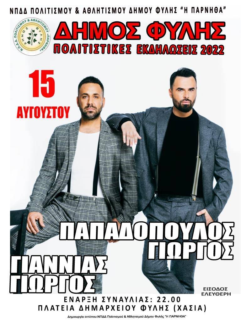 Πολιτιστικές και Aθλητικές δραστηριότητες Δήμου Φυλής | Τηλέφωνα: 210 2484 453 & 210 2484 942 |