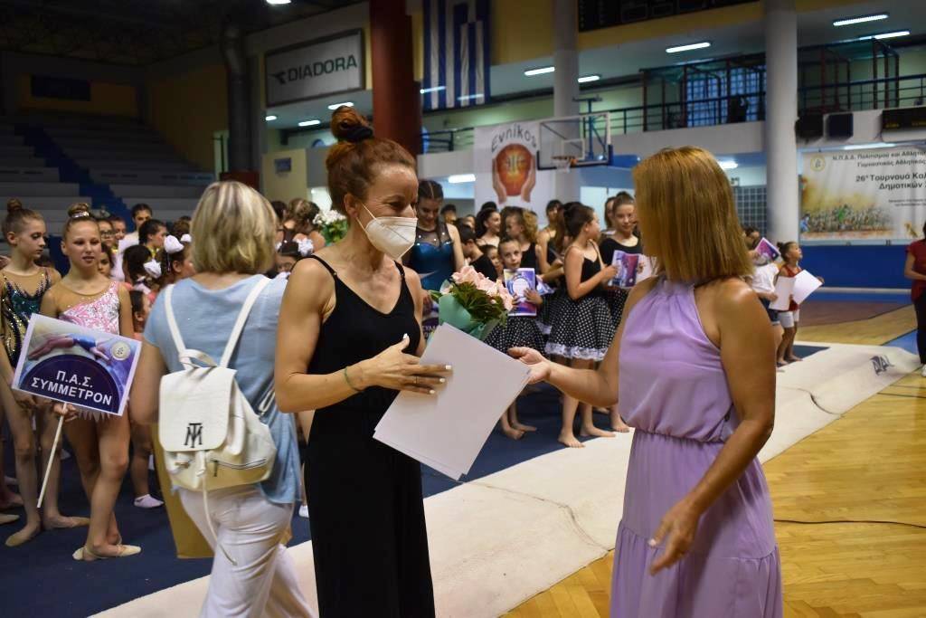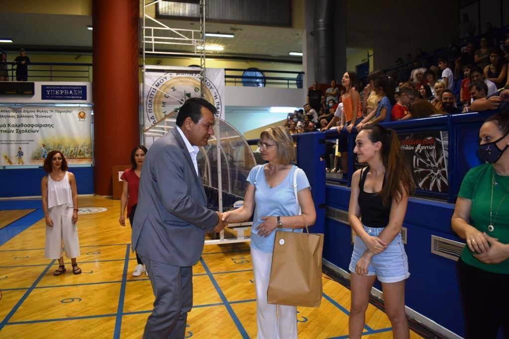 Ο Δήμαρχος Φυλής Χρήστος Παππούς συνεχάρη τις προπονήτριες την κάθε μια ξεχωριστά και τους αθλητές τους κι απένειμε τιμητική πλακέτα στον έφορο της Ελληνικής Ομοσπονδίας Γυμναστικής Δημήτρη Τσεγκέλη που έδωσε το “παρών” κι εξέφρασε τον θαυμασμό του, κάνοντας λόγο για εξαιρετικές και υψηλού επιπέδου εμφανίσεις.